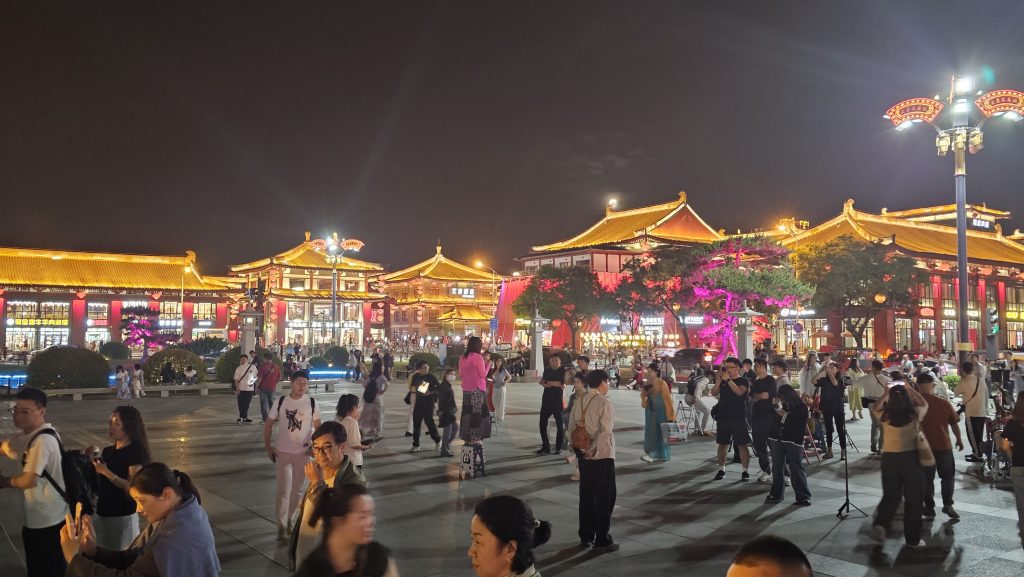 Datang Everbright City is a modern nighttime entertainment district inspired by the Tang Dynasty. Wide promenades, magnificent lighting, interactive light installations, street performances, and cultural shows transform the area after dark into a spectacular festival of lights and culture.